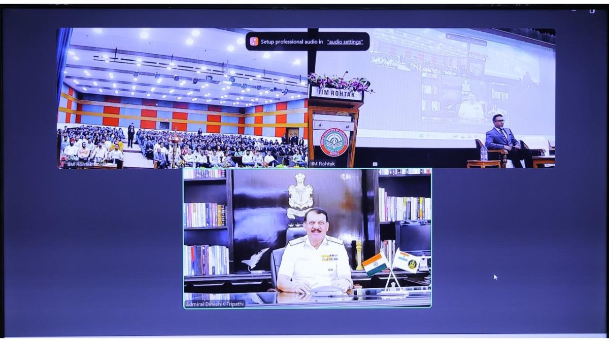 Admiral Dinesh K Tripathi, Chief of the Naval Staff, in his address to the students of IIM Rohtak, emphasised India’s deep-rooted maritime identity, tracing its origins to the ancient Harappan port city of Lothal, over 6,000 years ago. Declaring that “India was, is, and will always remain a maritime nation,” he underscored the strategic significance of the seas in India’s past, present, and future. With 95% of the nation’s trade by volume traversing maritime routes and 99% of global internet data flowing through undersea cables, he stressed that India’s journey toward becoming ‘Viksit Bharat’ by 2047 will be powered significantly by maritime strength. Highlighting the Indian Navy’s critical role in protecting these lifelines, he cited recent operations that saved over 400 lives and secured cargo worth more than USD 5.3 billion amidst crises in West Asia. He also noted the Navy’s role as a first responder during the 2025 Myanmar earthquake, reinforcing its position as a humanitarian force in the region. Transitioning to the second part of his address, Admiral Tripathi shared five key leadership lessons from his four-decade career: first, the importance of reading, writing, and reflecting as a means to develop clarity, judgment, and deeper understanding; second, the value of teamwork, stressing that collective success depends on mutual trust and collaboration; third, the essence of leadership, which he defined as empowering others, communicating effectively, taking risks, delegating wisely, and always thinking ahead; fourth, the necessity of sound decision-making, particularly under pressure—a skill critical in both naval command and business leadership; and fifth, the need for resilience, urging students to never give up, as adversity is inevitable but surmountable with self-belief and perseverance. In closing, Admiral Tripathi advised students to take their duties seriously while remaining humble and grounded, reminding them that humility, gratitude, and compassion are vital attributes of lasting leadership. Concluding with a powerful quote from Dr. A.P.J. Abdul Kalam, he urged students to “dream, dare, and deliver,” inspiring them to pursue excellence and contribute meaningfully to India’s future. His address was received with great enthusiasm and appreciation from both students and faculty.